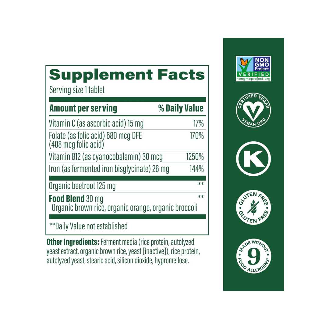 MegaFood Blood Builder Vegan Iron Supplement with Vitamin C, 60 Tablets
