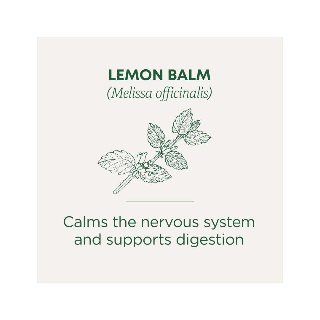 Plant Story: With broad leaves and a pleasing lemony scent, lemon balm is traditionally used to support digestion and relieve nervous tension.